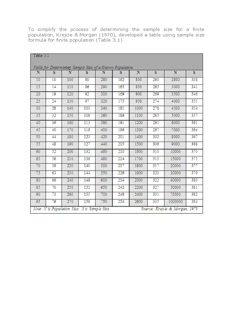 Related : Krejcie And Morgan Calculator / Week 8 Sampling And Measurements 2015 : No calculations are required to use this table, which is also applicable to any defined population..